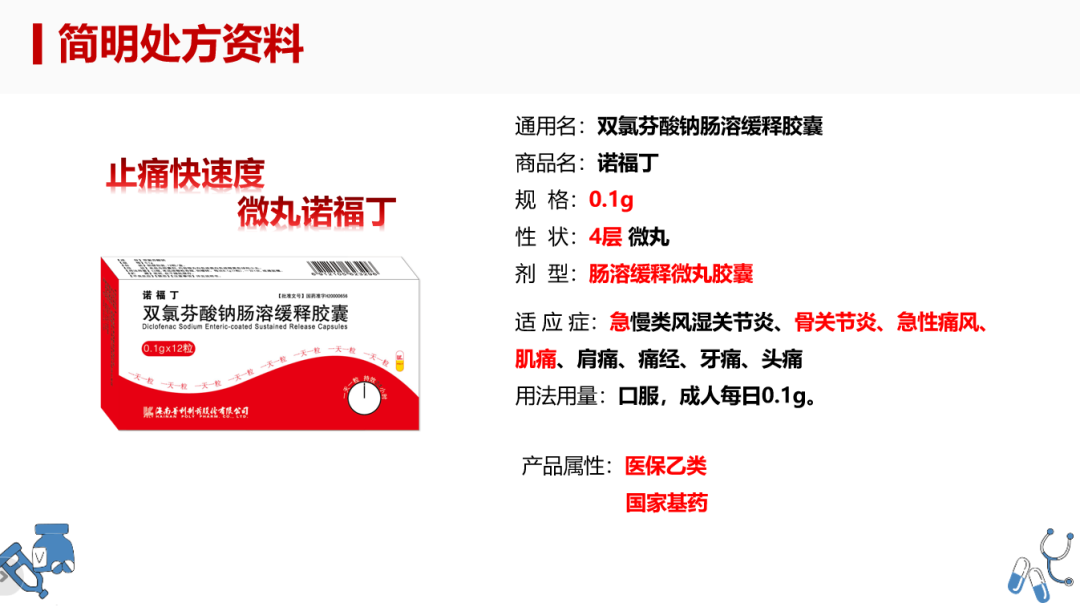普利制药以双氯芬酸为有效成分,采用独家微丸专利技术,研发4重微丸,制作独家肠溶缓释胶囊。药物服用后可快速起效,最快15分钟迅速止痛;并且作用时间长,镇痛时间维持24小时;在关节炎、风湿疼痛,腰背痛、痛经、痛风等均有良好的效果